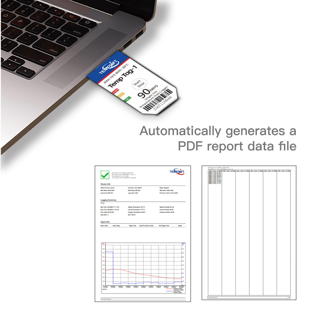 Tempwit provides all kinds of temperature data logging or temperature and humidity data logging solutions to make sure every change in the whole cold chain solution will be traced and recorded. Irreversible PDF Logging, CSV temperature history, and online IOT logging in any format are available.