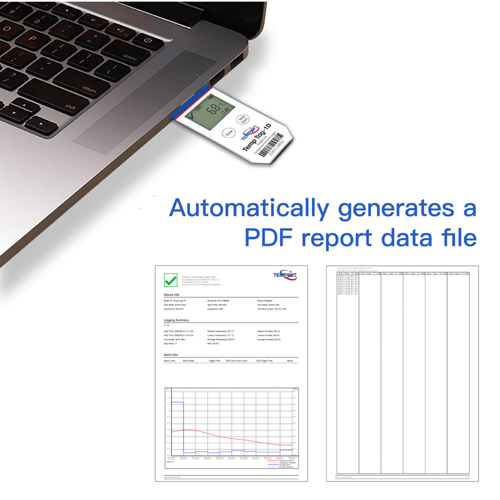 Tempwit provides all kinds of temperature data logging or temperature and humidity data logging solutions to make sure every change in the whole cold chain solution will be traced and recorded. Irreversible PDF Logging, CSV temperature history, and online IOT logging in any format are available.