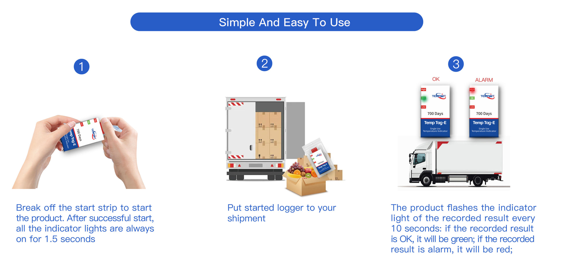 Tempwit single use temperature indicator is important to cold chain transportation for perishable products, especially food products. The non-breaking cold chain could guarantee food products maintain high quality and optimum shelf life.