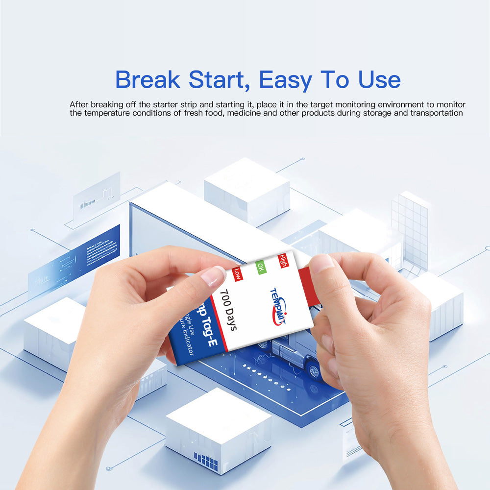 ● Break off the starting bar and place it in the target monitoring environment to monitor the temperature of fresh food, medicine and other products during storage and transportation.